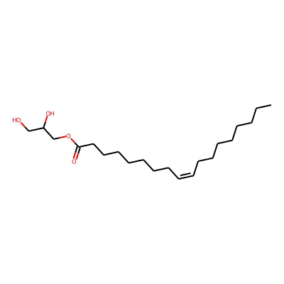 | CCSBASE_8C225A9ECF | OLEOYL-GLYCEROL | [M+Na]+ | 379.2824 | 197.3 | CCCCCCCC/C=C\CCCCCCCC(=O)OCC(CO)O | small molecule | 1 | 16 | DT | single field, calibrated with ESI Low Concentration Tuning Mix (Agilent) | |
