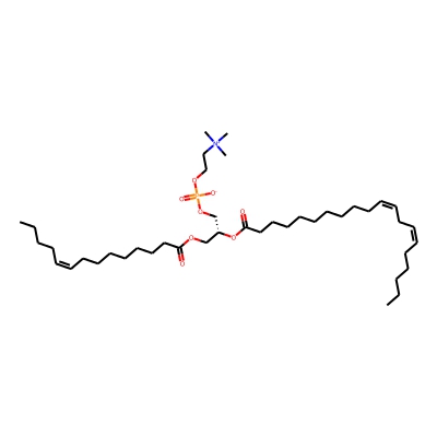 | CCSBASE_E914153113 | PC(34:02) | [M+H]+ | 758.5682 | 279.51 | [C@](COP(=O)([O-])OCC[N+](C)(C)C)([H])(OC(CCCCCCCCC/C=C\CCCCCC)=O)COC(CCCCCCC/C=C\CCCCCC)=O | lipid | 1 | 18 | DT | stepped-field | |