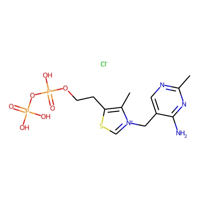| CCSBASE_FC56BC6B13 | Thiamine pyrophosphate | [M]+ | 425.0444 | 182.0 | CC1=C(SC=[N+]1CC2=CN=C(N=C2N)C)CCOP(=O)(O)OP(=O)(O)O.[Cl-] | small molecule | 1 | 4 | DT | single field, calibrated with Agilent tune mix (Agilent) | |