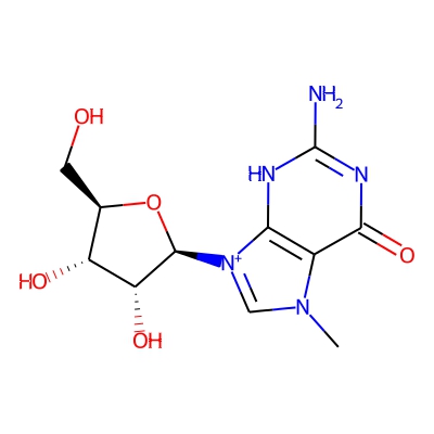| CCSBASE_D0DE2590C2 | 7-Methylguanosine | [M]+ | 298.1151 | 166.5 | CN1C=[N+](C2=C1C(=O)N=C(N2)N)[C@H]3[C@@H]([C@@H]([C@H](O3)CO)O)O | small molecule | 1 | 4 | DT | single field, calibrated with Agilent tune mix (Agilent) | |