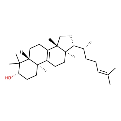 | CCSBASE_368885A65E | Lanosterol | [M+H-H2O]+ | 409.3834 | 207.3 | C[C@H](CCC=C(C)C)[C@H]1CC[C@@]2([C@@]1(CCC3=C2CC[C@@H]4[C@@]3(CC[C@@H](C4(C)C)O)C)C)C | small molecule | 1 | 4 | DT | single field, calibrated with Agilent tune mix (Agilent) | |