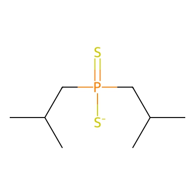 | CCSBASE_c2352864078eb0f85ce7122b2a0aad0c | Sodium bis(2-methylpropyl)phosphinodithioate | [M-H]- | 209.0593 | 0.87 | 150.27 | CC(C)CP(=S)(CC(C)C)[S-] | Organophosphorus compounds | -1 | 1 | TW | polyala | ||