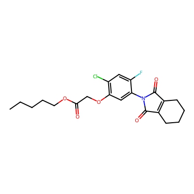 | CCSBASE_f95a714bd3ef02bd34a86cde8ca1aa56 | Flumiclorac-pentyl | [M-H]- | 422.1176 | 0.98 | 196.23 | CCCCCOC(=O)COC1=C(C=C(C(=C1)N2C(=O)C3=C(C2=O)CCCC3)F)Cl | Organoheterocyclic compounds | -1 | 1 | TW | polyala | ||