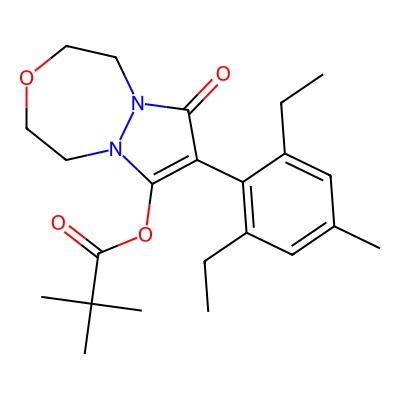 | CCSBASE_6955c812476eae8903bb0164b24ca8ea | Pinoxaden | [M+Na]+ | 423.2254 | 0.98 | 200.88 | CCC1=CC(=CC(=C1C2=C(N3CCOCCN3C2=O)OC(=O)C(C)(C)C)CC)C | Organoheterocyclic compounds | 1 | 1 | TW | polyala | ||