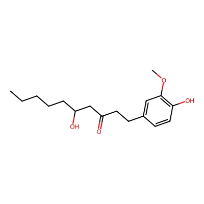 | CCSBASE_bbcd6c210bbd458bd9a21d21058b9b64 | (6)-Gingerol | [M+Na]+ | 317.1723 | 0.88 | 178.99 | CCCCCC(CC(=O)CCC1=CC(=C(C=C1)O)OC)O | Benzenoids | 1 | 1 | TW | polyala | ||