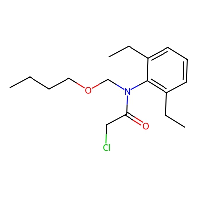 | CCSBASE_49898f6d07b3af1badc07b26ec47301d | Butachlor | [M+H]+ | 312.1725 | 1.02 | 172.33 | CCCCOCN(C1=C(C=CC=C1CC)CC)C(=O)CCl | Benzenoids | 1 | 1 | TW | polyala | ||