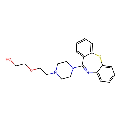 | CCSBASE_72a10631aa8cc8b570c0a99c4afa7397 | Quetiapine fumarate | [M+H]+ | 384.174 | 0.78 | 190.69 | C1CN(CCN1CCOCCO)C2=NC3=CC=CC=C3SC4=CC=CC=C42 | Organoheterocyclic compounds | 1 | 1 | TW | polyala | ||