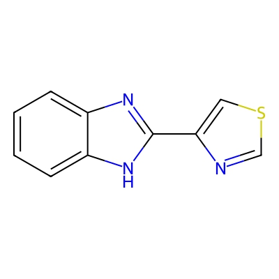 | CCSBASE_b6f4796a9cc626df8ad84dc4e493b5a5 | Thiabendazole | [M+H]+ | 202.0433 | 0.72 | 138.38 | C1=CC=C2C(=C1)NC(=N2)C3=CSC=N3 | Organoheterocyclic compounds | 1 | 1 | TW | polyala | ||