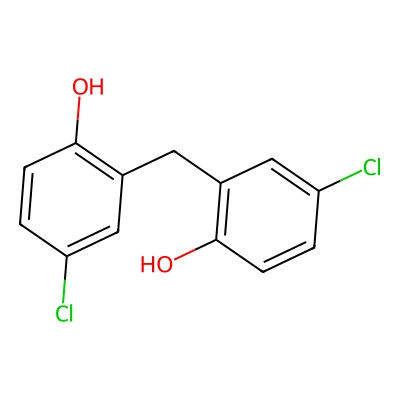 | CCSBASE_b94a606ecdb229c13b204f6b6c4e1e1b | Dichlorophen | [M-H]- | 266.9985 | 0.86 | 158.29 | C1=CC(=C(C=C1Cl)CC2=C(C=CC(=C2)Cl)O)O | Benzenoids | -1 | 1 | TW | polyala | ||
