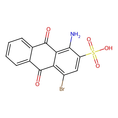 | CCSBASE_de22080e21b7c8b254565d07f6da4eb4 | 1-Amino-4-bromo-9,10-dioxo-9,10-dihydroanthracene-2-sulfonic acid | [M-H]- | 379.9234 | 0.89 | 168.33 | C1=CC=C2C(=C1)C(=O)C3=C(C=C(C(=C3C2=O)N)S(=O)(=O)O)Br | Benzenoids | -1 | 1 | TW | polyala | ||