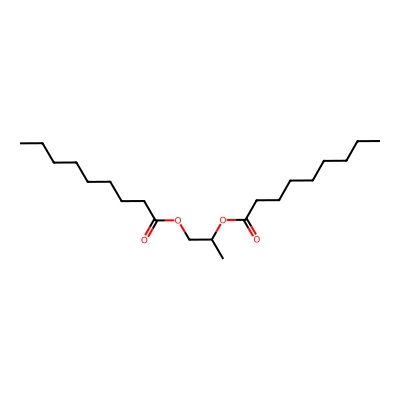 | CCSBASE_681648e918139965a8cf8368c3b9c482 | Propylene glycol dipelargonate | [M-H]- | 355.2854 | 1.05 | 191.0 | CCCCCCCCC(=O)OCC(C)OC(=O)CCCCCCCC | Lipids and lipid-like molecules | -1 | 1 | TW | polyala | ||