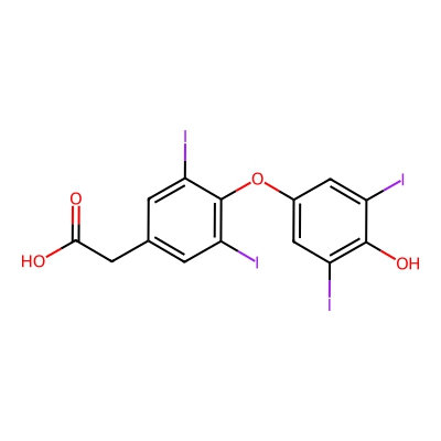 | CCSBASE_cbd22f1b26fd752299340c553803397d | Tetrac | [M-H]- | 746.6528 | 0.9 | 202.27 | C1=C(C=C(C(=C1I)OC2=CC(=C(C(=C2)I)O)I)I)CC(=O)O | Benzenoids | -1 | 1 | TW | polyala | ||