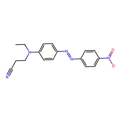 | CCSBASE_02530b04e476473ac508dbf86ade15fd | C.I. Disperse Orange 25 | [M+H]+ | 324.1455 | 0.95 | 183.44 | CCN(CCC#N)C1=CC=C(C=C1)N=NC2=CC=C(C=C2)[N+](=O)[O-] | Organoheterocyclic compounds | 1 | 1 | TW | polyala | ||