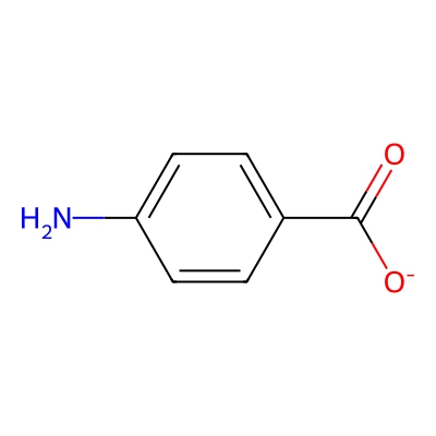| CCSBASE_A9C2DB539D | 4-Aminobenzoate | [M+H]+ | 138.0555 | 140.4 | C1=CC(=CC=C1C(=O)[O-])N | Benzenoids | 1 | 4 | DT | single field, calibrated with Agilent tune mix (Agilent) | |