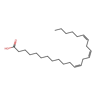 | CCSBASE_9F3DC6ADD1 | FA(24:3) | [M-H]- | 361.306 | 188.96 | CCCCC/C=C\C/C=C\C/C=C\CCCCCCCCCCC(=O)O | Lipids and lipid-like molecules | -1 | 20 | TIMS | single field, calibrated | |