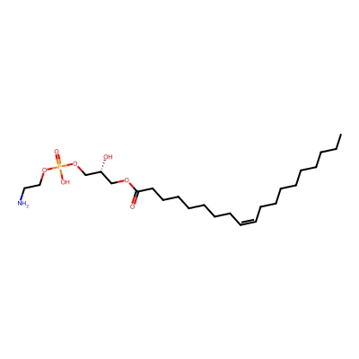 | CCSBASE_14E7035CA3 | LPE(20:1) | [M-H]- | 506.318 | 215.56 | CCCCCCCC/C=C\CCCCCCCCCC(=O)OC[C@H](COP(=O)(O)OCCN)O | Lipids and lipid-like molecules | -1 | 20 | TIMS | single field, calibrated | |