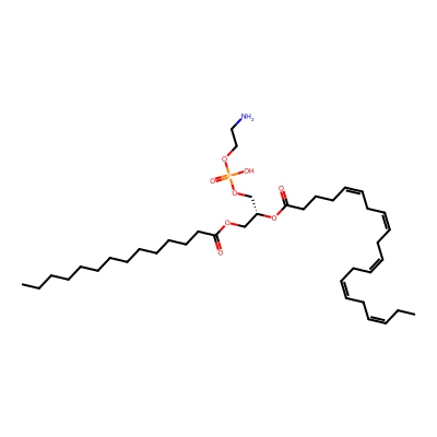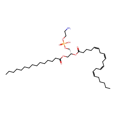 | CCSBASE_6BAF2E37F9 | PE(15:0/20:4) | [M-H]- | 724.479 | 260.88 | [C@](COP(=O)(O)OCCN)([H])(OC(CCC/C=C\C/C=C\C/C=C\C/C=C\CCCCC)=O)COC(CCCCCCCCCCCCCC)=O | Lipids and lipid-like molecules | -1 | 20 | TIMS | single field, calibrated |