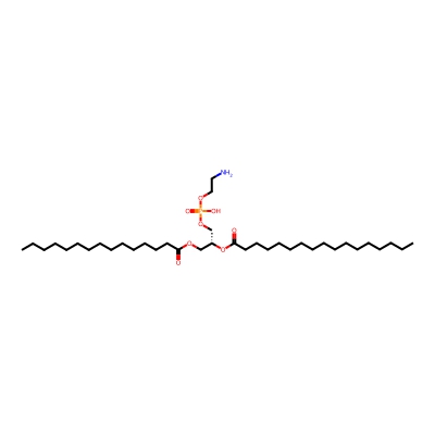 | CCSBASE_38CED2D728 | PE(15:0/17:0) | [M-H]- | 690.493 | 256.31 | [C@](COP(=O)(O)OCCN)([H])(OC(CCCCCCCCCCCCCCCC)=O)COC(CCCCCCCCCCCCCC)=O | Lipids and lipid-like molecules | -1 | 20 | TIMS | single field, calibrated | |
