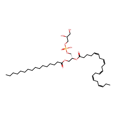 | CCSBASE_D40C1BC909 | PG(16:0/20:4) | [M-H]- | 769.493 | 270.34 | [C@]([H])(OC(CCC/C=C\C/C=C\C/C=C\C/C=C\CCCCC)=O)(COP(=O)(O)OC[C@@]([H])(O)CO)COC(CCCCCCCCCCCCCCC)=O | Lipids and lipid-like molecules | -1 | 20 | TIMS | single field, calibrated | |