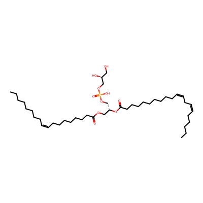 | CCSBASE_E96442921C | PG(18:2/18:2) | [M-H]- | 769.493 | 272.27 | [H][C@](O)(CO)COP(OC[C@]([H])(OC(CCCCCCC/C=C\C/C=C\CCCCC)=O)COC(CCCCCCC/C=C\C/C=C\CCCCC)=O)(=O)O | Lipids and lipid-like molecules | -1 | 20 | TIMS | single field, calibrated |
