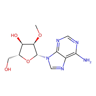 | CCSBASE_7E83920EDE | 2'-O-methyladenosine | [M+Na]+ | 304.1022 | 168.7 | CO[C@@H]1[C@@H]([C@H](O[C@H]1N2C=NC3=C(N=CN=C32)N)CO)O | Nucleosides, nucleotides, and analogues | 1 | 4 | DT | single field, calibrated with Agilent tune mix (Agilent) | |