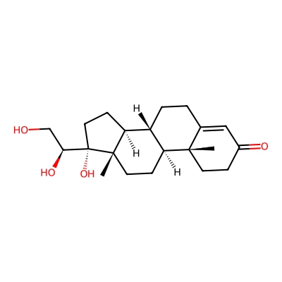 | CCSBASE_089AEBDD8A | 17-alpha, 20-beta, 21-trihydroxypreg-4-en-3-one | [M+HCOO]- | 393.2282595 | 198.78 | C[C@]12CCC(=O)C=C1CC[C@@H]3[C@@H]2CC[C@]4([C@H]3CC[C@@]4([C@H](CO)O)O)C | Lipids and lipid-like molecules | -1 | 23 | TW | calibrated with small molecules, "System Suitability Test" mix | |