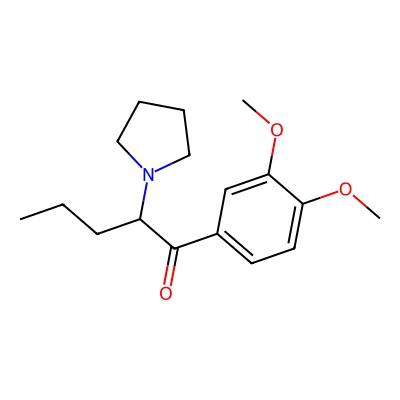 | CCSBASE_8E46A6F0DC | 3,4-dimethoxy-alpha-PVP | [M+H]+ | 292.1907237 | 176.32 | CCCC(C(=O)c1ccc(OC)c(OC)c1)N1CCCC1 | None | 1 | 23 | TW | calibrated with small molecules, "System Suitability Test" mix | |