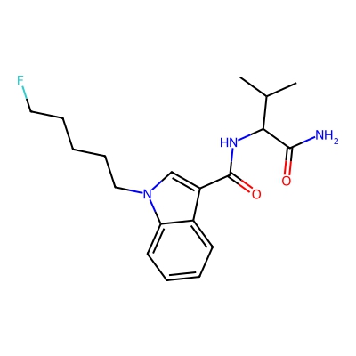 | CCSBASE_3064CEC6EB | 5-Fluoro-ABICA | [M+H]+ | 348.2081853 | 189.3 | CC(C)C(C(=O)N)NC(=O)C1=CN(C2=CC=CC=C21)CCCCCF | Organic acids and derivatives | 1 | 23 | TW | calibrated with small molecules, "System Suitability Test" mix | |