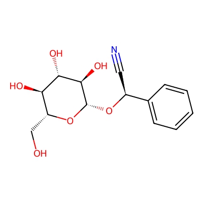 | CCSBASE_A34EE25E48 | Prunasin | [M+Na]+ | 318.0954 | 173.7 | C1=CC=C(C=C1)[C@H](C#N)O[C@H]2[C@@H]([C@H]([C@@H]([C@H](O2)CO)O)O)O | Organic oxygen compounds | 1 | 4 | DT | single field, calibrated with Agilent tune mix (Agilent) | |