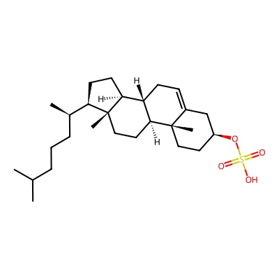 | CCSBASE_3082A96B4A | Cholesteryl sulfate | [M-H]- | 465.3039 | 237.0061504 | C[C@H](CCCC(C)C)[C@H]1CC[C@@H]2[C@@]1(CC[C@H]3[C@H]2CC=C4[C@@]3(CC[C@@H](C4)OS(=O)(=O)O)C)C | Lipids and lipid-like molecules | -1 | 4 | DT | single field, calibrated with Agilent tune mix (Agilent) | |