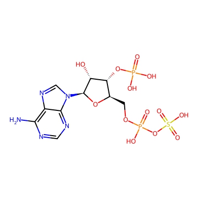 | CCSBASE_82641D7ECF | 3'-Phosphoadenosine 5'-phosphosulfate | [M-H]- | 505.9784 | 192.7560708 | C1=NC(=C2C(=N1)N(C=N2)[C@H]3[C@@H]([C@@H]([C@H](O3)COP(=O)(O)OS(=O)(=O)O)OP(=O)(O)O)O)N | Nucleosides, nucleotides, and analogues | -1 | 4 | DT | single field, calibrated with Agilent tune mix (Agilent) | |