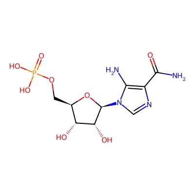 | CCSBASE_D8E9DC502A | 5'-Phosphoribosyl-5-amino-4-imidazolecarboxamide | [M-H]- | 337.055 | 167.6150834 | C1=NC(=C(N1[C@H]2[C@@H]([C@@H]([C@H](O2)COP(=O)(O)O)O)O)N)C(=O)N | Nucleosides, nucleotides, and analogues | -1 | 4 | DT | single field, calibrated with Agilent tune mix (Agilent) | |