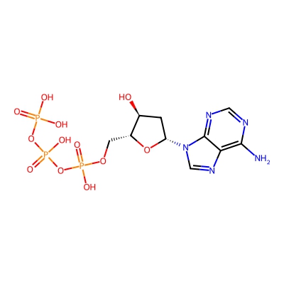 | CCSBASE_D261C02A89 | 2'-Deoxyadenosine 5'-triphosphate | [M-H]- | 489.993 | 183.7786738 | C1[C@@H]([C@H](O[C@H]1N2C=NC3=C(N=CN=C32)N)COP(=O)(O)OP(=O)(O)OP(=O)(O)O)O | Nucleosides, nucleotides, and analogues | -1 | 4 | DT | single field, calibrated with Agilent tune mix (Agilent) | |