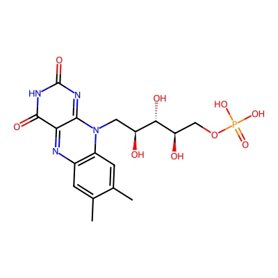 | CCSBASE_E20C2FAC77 | Flavin mononucleotide | [M-H]- | 455.0968 | 194.9217931 | CC1=CC2=C(C=C1C)N(C3=NC(=O)NC(=O)C3=N2)C[C@@H]([C@@H]([C@@H](COP(=O)(O)O)O)O)O | Nucleosides, nucleotides, and analogues | -1 | 4 | DT | single field, calibrated with Agilent tune mix (Agilent) | |