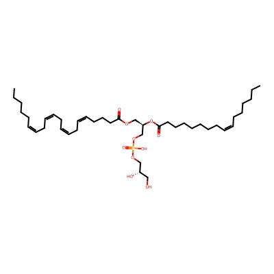 | CCSBASE_60F94FE7CD | PG(36:4) | [M+Na]+ | 793.5 | 281.0 | CCCCCCCCCCCCCCCCCC(=O)O[C@H](COC(=O)CCCC/C=C\C/C=C\C/C=C\C/C=C\CC)COP(=O)(O)OC[C@H](CO)O | Lipids and lipid-like molecules | 1 | 5 | TW | calibrated with phosphatidylcholines (ESI+) and phosphatidylethanolamines (ESI-) | |
