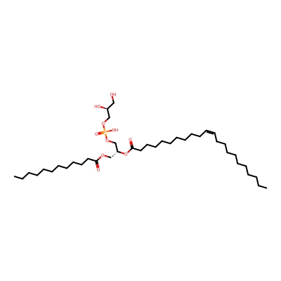 | CCSBASE_FBBEE97821 | PG(34:0) | [M+Na]+ | 773.524 | 282.2 | CCCCCCCCCCCCCCCCCCCC(=O)OC[C@H](COP(=O)(O)OC[C@H](CO)O)OC(=O)CCCCCCCCCCCCC | Lipids and lipid-like molecules | 1 | 5 | TW | calibrated with phosphatidylcholines (ESI+) and phosphatidylethanolamines (ESI-) | |