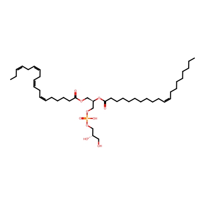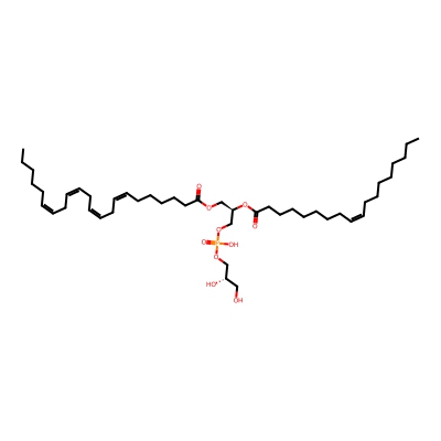 | CCSBASE_686C8E173C | PG(38:4) | [M+Na]+ | 821.533 | 287.8 | CCCCCCCC/C=C\CCCCCCCCCC(=O)OC[C@H](COP(=O)(O)OC[C@H](CO)O)OC(=O)CCCCCCC/C=C\C/C=C\C/C=C\CC | Lipids and lipid-like molecules | 1 | 5 | TW | calibrated with phosphatidylcholines (ESI+) and phosphatidylethanolamines (ESI-) | |