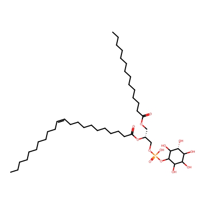 | CCSBASE_3B88D9DD17 | PIP(36:3) | [M+H-H2O]+ | 923.504 | 292.7 | CCCCCCCC/C=C\CCCCCCCC(=O)OC[C@H](COP(=O)(O)O[C@@H]1C([C@@H](C(C(C1O)O)O)OP(=O)(O)O)O)OC(=O)CCCCCCC/C=C\C/C=C\CCCCC | Lipids and lipid-like molecules | 1 | 5 | TW | calibrated with phosphatidylcholines (ESI+) and phosphatidylethanolamines (ESI-) | |