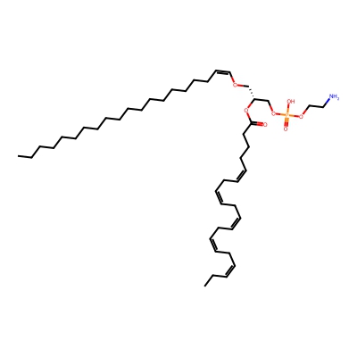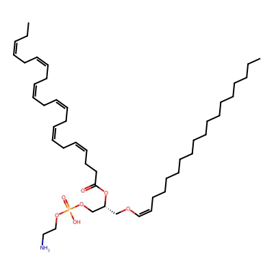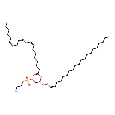 | CCSBASE_1F3FFD0204 | PE(p40:4) | [M+Na]+ | 802.572 | 290.1 | CCCCCCCCCCCCCCCCCC/C=C\OC[C@H](COP(=O)(O)OCCN)OC(=O)CCC/C=C\C/C=C\C/C=C\C/C=C\CCCCC | Lipids and lipid-like molecules | 1 | 5 | TW | calibrated with phosphatidylcholines (ESI+) and phosphatidylethanolamines (ESI-) | |