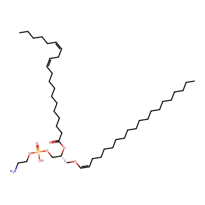 | CCSBASE_3D0990DC73 | PE(p40:2) | [M+H]+ | 784.619 | 290.0 | CCCCCCCCCCCCCCCCCC/C=C\OC[C@H](COP(=O)(O)OCCN)OC(=O)CCCCCCCCC/C=C\C/C=C\CCCCC | Lipids and lipid-like molecules | 1 | 5 | TW | calibrated with phosphatidylcholines (ESI+) and phosphatidylethanolamines (ESI-) | |