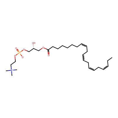 | CCSBASE_E8B3034F20 | LPC(20:4) | [M+H]+ | 544.34 | 232.4 | CC/C=C\C/C=C\C/C=C\C/C=C\CCCCCCC(=O)OC[C@H](COP(=O)([O-])OCC[N+](C)(C)C)O | Lipids and lipid-like molecules | 1 | 5 | TW | calibrated with phosphatidylcholines (ESI+) and phosphatidylethanolamines (ESI-) | |