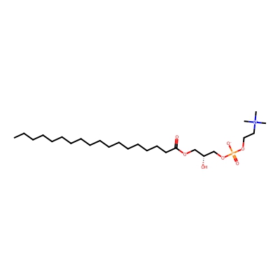 | CCSBASE_E49F5B13FF | LPC(18:0) | [M+H]+ | 524.372 | 235.7 | CCCCCCCCCCCCCCCCCC(=O)OC[C@H](COP(=O)([O-])OCC[N+](C)(C)C)O | Lipids and lipid-like molecules | 1 | 5 | TW | calibrated with phosphatidylcholines (ESI+) and phosphatidylethanolamines (ESI-) | |