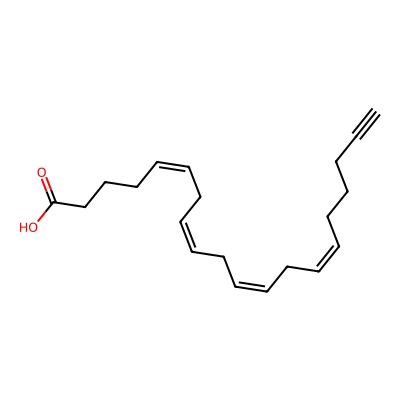 | CCSBASE_e25f926eedcb138cf5890f9beffce6cd | arachidonic acid-alkyne | [M-H]- | 299.2016428 | 180.6 | C#CCCC/C=C\C/C=C\C/C=C\C/C=C\CCCC(=O)O | Lipids and lipid-like molecules | -1 | 27 | TIMS | calibrated with ESI Low Concentration Tuning Mix (Agilent) | |