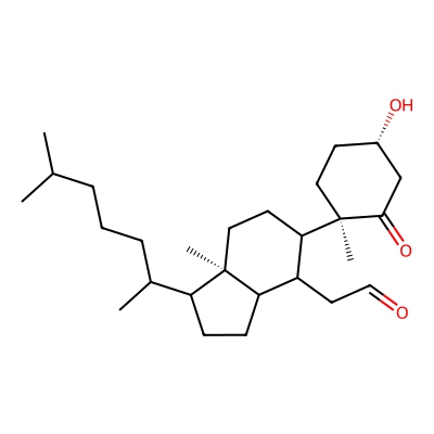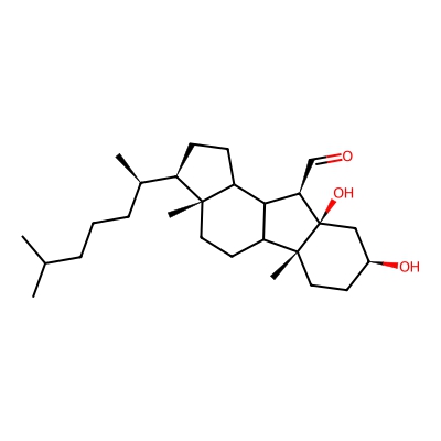| CCSBASE_e8c97fb07a64a5785ca39a8b1290f8d4 | Atheronal B | [M+Na]+ | 441.333897 | 226.766666667 | C[C@H](CCCC(C)C)[C@H]1CCC2[C@@]1(CCC3C2[C@H]([C@]4([C@@]3(CC[C@@H](C4)O)C)O)C=O)C | Lipids and lipid-like molecules | 1 | 27 | TIMS | calibrated with ESI Low Concentration Tuning Mix (Agilent) | |