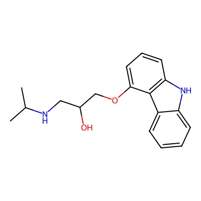 | CCSBASE_0F3960C2CA | Carazolol | [M+H]+ | 299.1754 | 165.5 | CC(C)NCC(COC1=CC=CC2=C1C3=CC=CC=C3N2)O | Organoheterocyclic compounds | 1 | 6 | TW | ? | |