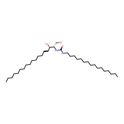 | CCSBASE_dc0c7a6d3d1d2ef048efa108d13b7d9a | C16-Urea-Ceramide | [M+H]+ | 567.54589147 | 263.966666667 | CCCCCCCCCCCCCCCCNC(=O)N[C@@H](CO)[C@@H](/C=C/CCCCCCCCCCCCC)O | Organic acids and derivatives | 1 | 27 | TIMS | calibrated with ESI Low Concentration Tuning Mix (Agilent) | |
