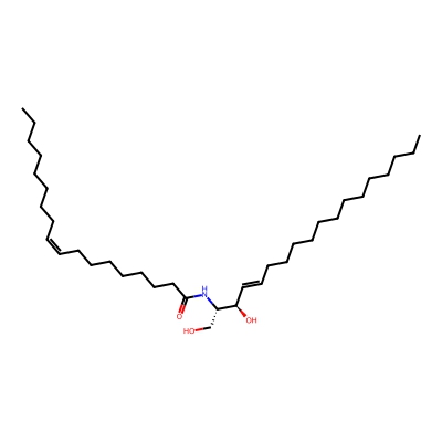 | CCSBASE_f424be92aef46d162c4ecd7341cbb7ba | C18:1 Ceramide (d18:1/18:1(9Z)) | [M+Cl]- | 598.497118 | 254.48 | CCCCCCCCCCCCC/C=C/[C@H]([C@H](CO)NC(=O)CCCCCCC/C=C\CCCCCCCC)O | None | -1 | 27 | TIMS | calibrated with ESI Low Concentration Tuning Mix (Agilent) | |