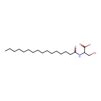 | CCSBASE_32a1c7f7c51d873d7ba78db60ad3eb3f | N-16:0 L-Serine | [M-H]- | 342.2649682 | 191.9 | CCCCCCCCCCCCCCCC(=O)NC(CO)C(=O)[O-] | None | -1 | 27 | TIMS | calibrated with ESI Low Concentration Tuning Mix (Agilent) | |