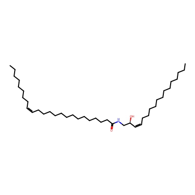 | CCSBASE_0ba6ccef2ac23455de82e041add96cc4 | N-C24:1-desoxymethylsphinganine | [M+HCOO]- | 664.6248998 | 278.37 | CCCCCCCCCCCCCCC[C@@H](CNC(=O)CCCCCCCCCCCCC/C=C\CCCCCCCC)O | Lipids and lipid-like molecules | -1 | 27 | TIMS | calibrated with ESI Low Concentration Tuning Mix (Agilent) | |