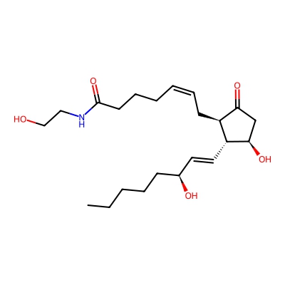 | CCSBASE_0477a6836320e6c50881bd3aa4f35144 | PGE2-EA | [M+Na]+ | 418.2563796 | 206.2 | CCCCC[C@@H](/C=C/[C@H]1[C@@H](CC(=O)[C@@H]1C/C=C\CCCC(=O)NCCO)O)O | Lipids and lipid-like molecules | 1 | 27 | TIMS | calibrated with ESI Low Concentration Tuning Mix (Agilent) | |